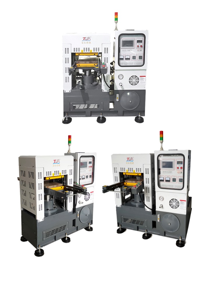 2.精密合模:采用技術平面均壓校正,最大壓力(200kg)螺母調平裝置,可將上下發熱板的平行度提高到0.05mm。