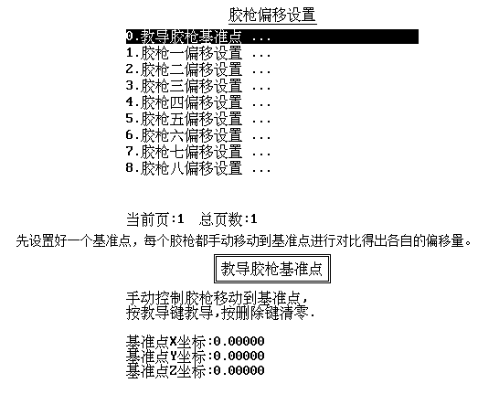 8色點(diǎn)膠機(jī)膠槍偏移設(shè)置: 八個(gè)膠槍的相對(duì)位置有偏差, 通過(guò)該功能來(lái)設(shè)置位置偏差。