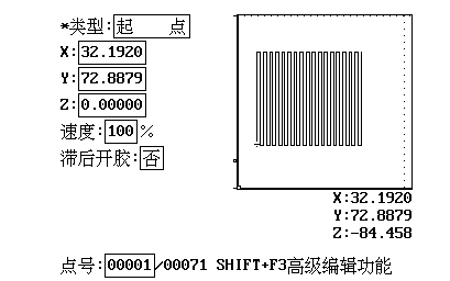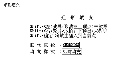 教導(dǎo)矩形的兩個對角點,自動生成填充圖形。當(dāng)膠槍直徑無法被設(shè)定的邊長整除時,會提示是否放大或縮小膠槍直徑來使膠槍直徑能被邊長整除。