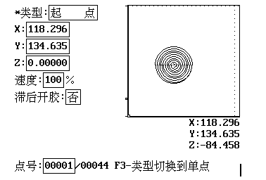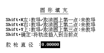 l 圓形填充 教導(dǎo)需要填充的圓形的圓周上三個點,自動生成類似于螺旋線的填充圖形。當(dāng)膠槍直徑無法被圓形半徑整除時會提示是否放大或縮小膠槍直徑來使膠槍直徑能被圓形半徑整除。