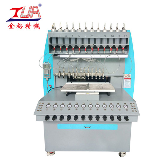 1加熱滴注型滴塑設備 ①滴塑工藝原理 加熱滴注是把熱塑性共聚液態材料在滴注前加熱,并保持在60~70°℃的溫度,使塑性材料有較低的黏度和較好的流動性、流平性。然后利用流體的熱能和動能,將其滴注在印品表面 ②滴塑設備組成 加熱滴注設備由熱塑性液料輸供裝置、加熱裝置、滴注裝置組成。 儲料槽3中的塑性液料由供料泵1吸岀,經過濾器Σ過濾,通過管道7壓向加熱裝置4。管道7中的液料在調溫器5的作用下,控制加熱裝置4對液料進行加熱或保溫。塑性液料達到工作溫度后,經供料閥門9,通過供輸料軟管8到達多個滴注器11。調節滴注器,即可控制滴注流量和諫度,從而完成印品14表面特定要求的滴塑表面整飾。多余的液料由滴注器上的回料軟管13,通過回料閥門10自動流入儲料槽。 2加壓滴注型滴塑設備 ①滴塑工藝原理 加壓滴注是利用高壓泵對塑性液料施加適當的壓力,從而促使其通過滴注器滴流到加工品表面并形成具有沖撞性的強力附著。 ②滴塑設備組成 加壓滴注設備由加壓供輸料裝置、滴注裝置等組成 儲料槽4中的塑性液料,在動力源2輸入能源后,由壓力泵1抽出并在蓄壓過濾器組合中過濾并蓄壓。壓力表5顯示壓力值并將其反饋給動力源,根據實際的壓力需求來調節動力源對壓力泵的供壓情況。打開滴注器8的閥門,在壓力驅動下,液料便會通過供料管6和供料軟管7到達%E 東莞市金裕自動化機械設備有限公司成立于2000年,金裕坐落于東莞市大嶺山向東工業區,創辦硅膠、PVC商標禮品生產設備.金裕研發的全自動全自動點膠機、矽膠機、油壓機、KPU鞋材機以及終于實現了的智能無人車間生產流水線,金裕的自動化設備可以做到讓你省人、省電、省管理。金裕公司歡迎新老顧客來訪,選擇金裕,沒有顧慮。m.touristlink.com.cn |