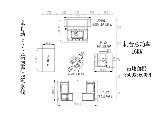 采用自動滴塑機,根據產品圖案編好滴各種顏色的程序。當模具進入預定工位時,系統將自動識別不同模具,而選擇預存的相應程序準確滴出不同顏色的色料于模具中