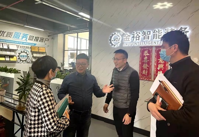 2月24日,東莞市茶山鎮(zhèn)經(jīng)發(fā)局葉笑美局長(zhǎng)一行蒞臨莞民投·松湖信息產(chǎn)業(yè)園考察。在園區(qū)執(zhí)行總經(jīng)理陳滿根的陪同下,考察組一行走訪了招商中心,了解園區(qū)的工程進(jìn)度、企業(yè)進(jìn)駐及復(fù)工復(fù)產(chǎn)等情況,并與園區(qū)工作人員進(jìn)行了座談。葉笑美充分肯定了園區(qū)的招商及運(yùn)營(yíng)工作,并表示經(jīng)發(fā)局將持續(xù)營(yíng)造優(yōu)質(zhì)的營(yíng)商環(huán)境,助力園區(qū)及入園企業(yè)發(fā)展,共同創(chuàng)造更大的社會(huì)經(jīng)濟(jì)效益。 ![]() 葉笑美一行還前往入園企業(yè)東莞市金裕自動(dòng)化機(jī)械設(shè)備有限公司,深入了解企業(yè)生產(chǎn)情況、2021年產(chǎn)值及2022年發(fā)展計(jì)劃。考察組與各企業(yè)負(fù)責(zé)人親切交談,鼓勵(lì)企業(yè)用好用足政策,加大科技創(chuàng)新力度,促進(jìn)企業(yè)高質(zhì)量發(fā)展。 ![]() 葉笑美局長(zhǎng)一行在金裕公司考察 |