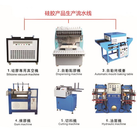 金裕公司提供多色硅膠生產(chǎn)流水線整套設(shè)備:硅膠專用真空機(jī)、自動(dòng)點(diǎn)膠機(jī)、自動(dòng)烤模臺、煉膠機(jī)、切料機(jī),油壓機(jī)等,并全程提供技術(shù)支持和完善的售后服務(wù),歡迎廣大客戶前來咨詢。