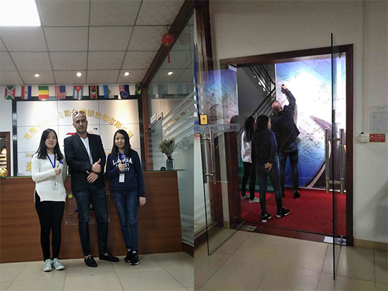 意大利客戶簽名墻簽名與金裕外貿(mào)銷售人員合影留念。