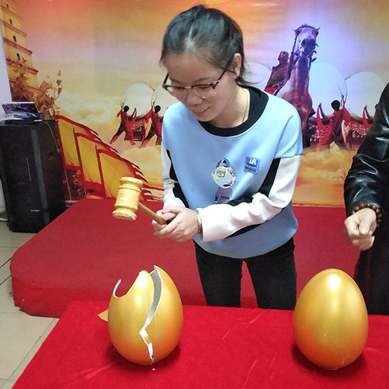 祝我們金裕外貿小伙伴-葉昕首開單,金裕除了每月第一次下單和月銷量最高者,來金裕首開單也可砸蛋,來看看現場砸蛋情況í