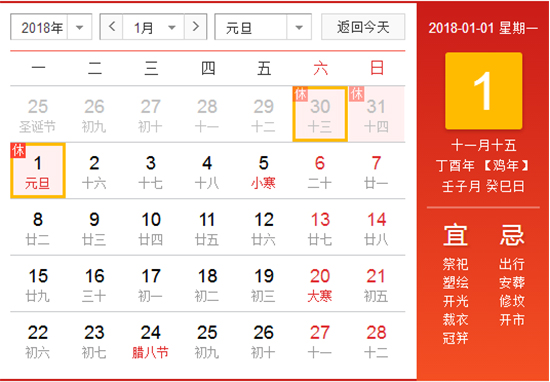 2018年元旦放假通知
