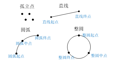 孤立點、直線、圓弧和整圓示意圖