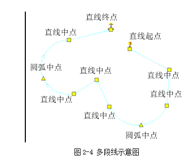 金裕點膠機多段線調試講解 多段線可以由任意多個點組成。如圖2-4所示,多段線的第1個點為“直線起點”,最后一個點為“直線終點”。圓弧過渡的中間點為“圓弧中點”。圓弧2端的端點為“直線中點”。多段線實際上是若干直線和圓弧首尾連接而成。跑道形、圓角矩形都是屬于多段線。很多不規則的曲線也可以通過多段線來逼近。