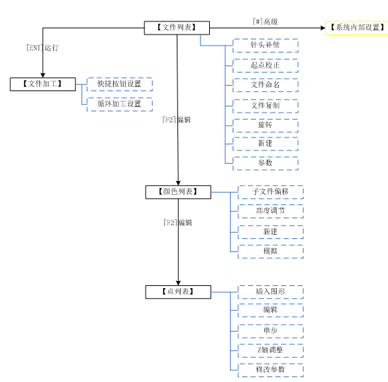 金裕點(diǎn)膠機(jī)界面層次和功能簡介![]() 示教盒操作界面層次示意圖 上圖為金裕點(diǎn)膠機(jī)示教盒操作界面層次示意圖。用戶主要用到的就是4個(gè)相關(guān)界面:【文件列表】、【顏色列表】、【點(diǎn)列表】、【文件加工】。 1. 顏色列表。列舉出當(dāng)前選擇的加工文件的所有顏色。提供了偏移 高度調(diào)節(jié)、模擬運(yùn)行、設(shè)置膠頭等功能。 2. 點(diǎn)列表。列舉出當(dāng)前顏色的所有圖形和點(diǎn)。提供了單步、編輯、 修改圖形參數(shù)等功能。 3. 文件加工。進(jìn)行文件加工,停止等。提供了設(shè)置快捷按鈕、循環(huán) 加工參數(shù)等功能。 另外,在【文件列表】界面按[#]能進(jìn)入【高級(jí)設(shè)置】界面,該界面中的功能為系統(tǒng)高級(jí)設(shè)置,只允許工程師來配置其中的設(shè)置,不推薦操作員進(jìn)入該界面修改設(shè)置。 東莞市金裕自動(dòng)化機(jī)械設(shè)備有限公司成立于2000年,金裕坐落于東莞市大嶺山向東工業(yè)區(qū),創(chuàng)辦硅膠、PVC商標(biāo)禮品生產(chǎn)設(shè)備.金裕研發(fā)的全自動(dòng)全自動(dòng)點(diǎn)膠機(jī)、矽膠機(jī)、油壓機(jī)、KPU鞋材機(jī)以及終于實(shí)現(xiàn)了的智能無人車間生產(chǎn)流水線,金裕的自動(dòng)化設(shè)備可以做到讓你省人、省電、省管理。金裕公司歡迎新老來訪,選擇金裕,沒有顧慮。m.touristlink.com.cn |