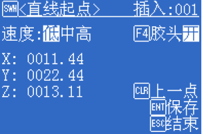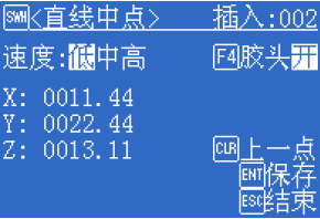 滴塑機 在【點列表界面】中按下[F1]插入進入【點類型界面】后,選擇“[1]多段線”。示教盒提示第一插入直線起點: